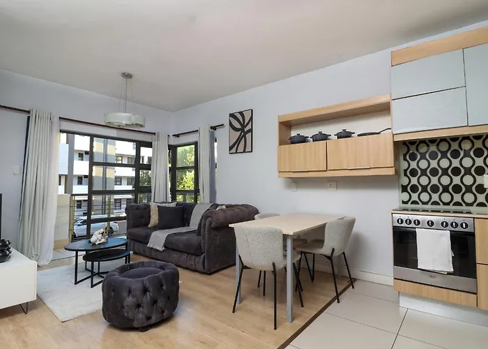 Die Ferienwohnung Urban Oasis- Rivonia bietet Annehmlichkeiten für Selbstversorger wie eine komplette Küche sowie einen Essbereich für die Gäste. Das Apartment befindet sich in rund 10 Autominuten Entfernung vom Bahnhof Gau Sandton gelegen. Ein Swimmingpool steht den Gästen zur Verfügung und sorgt für einen entspannten Aufenthalt.